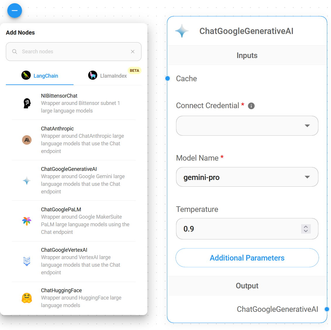 4. ¡Voilà [🎉](https://emojipedia.org/party-popper/), ahora puedes usar el **nodo ChatGoogleGenerativeAI** en Flowise