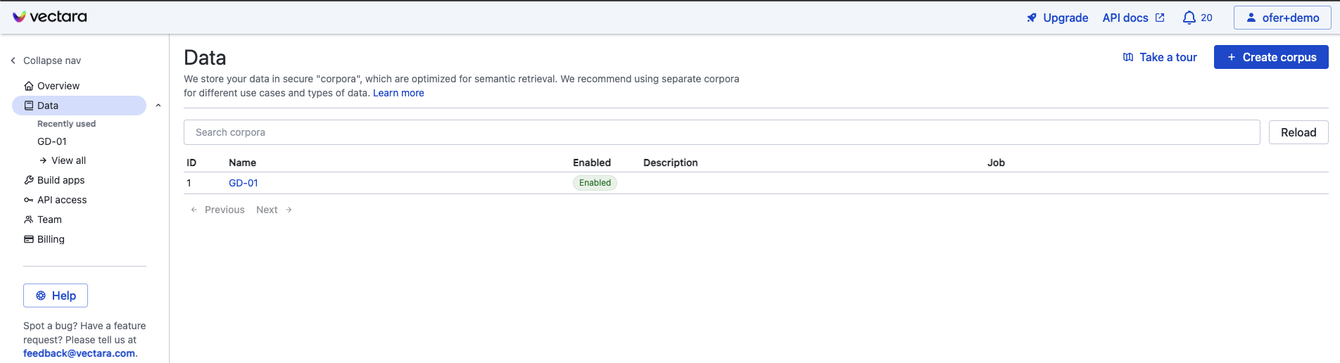 2. Haz clic en **Create Corpus**